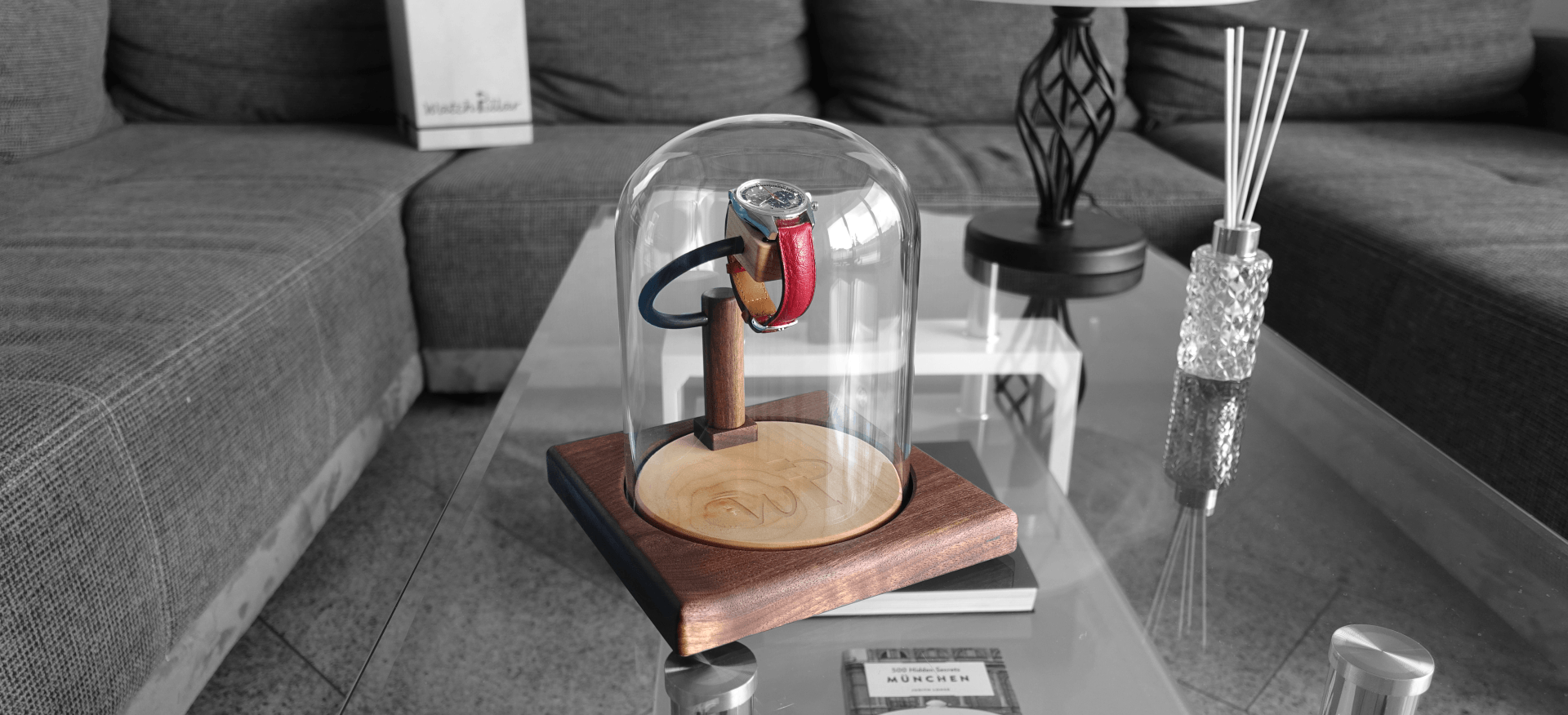 ist ein geschmackvolles Einrichtungsobjekt und ein eleganter Uhrenständer, der Ihre Uhr in Szene setzt.